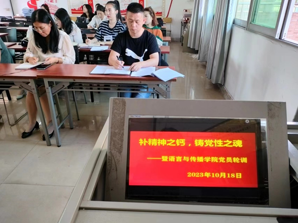 为贯彻落实中央和省委关于党员全员轮训的部署要求,深入学习贯彻习近平新时代中国特色社会主义思想和党的二十大精神,切实提高党员政治素养,持续加强基层党员队伍建设,语言与传播学院开展学习贯彻习近平新时代中国特色社会主义思想主题教育党员轮训。语言与传播学院领导班子成员、党总支书记、专职组织员、党支部书记和全体党员参加了轮训。