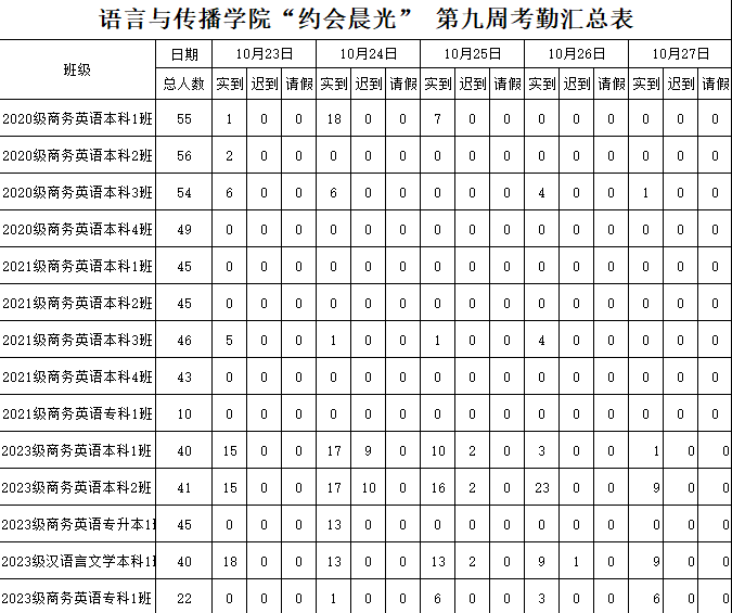 学风建设第1线|第9周卫生考勤情况通报汇总表