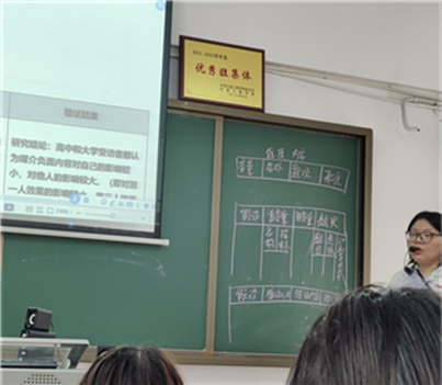 图2:课堂上分析媒介负面内容对学生的影响等相关文献,引导学生读懂论文,思考负面内容对自身的影响,引导学生接触媒介正向内容,并且以及通过改善媒介接触方式或频率等优化自身对于媒介信息的选择接收。
