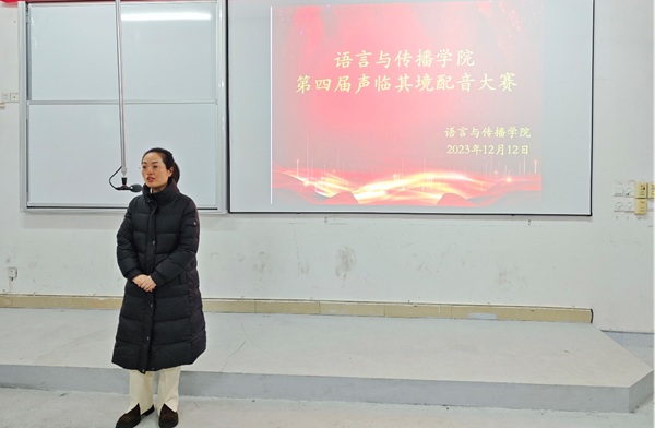 活动伊始,由语言与传播学院党总支谢丽丽致辞。首先,谢书记强调“以创新之姿,传承天工文化”的重要性。紧接着,她宣布:“语言与传播学院第四届配音大赛正式开始”,并向同学们寄予殷切期望。