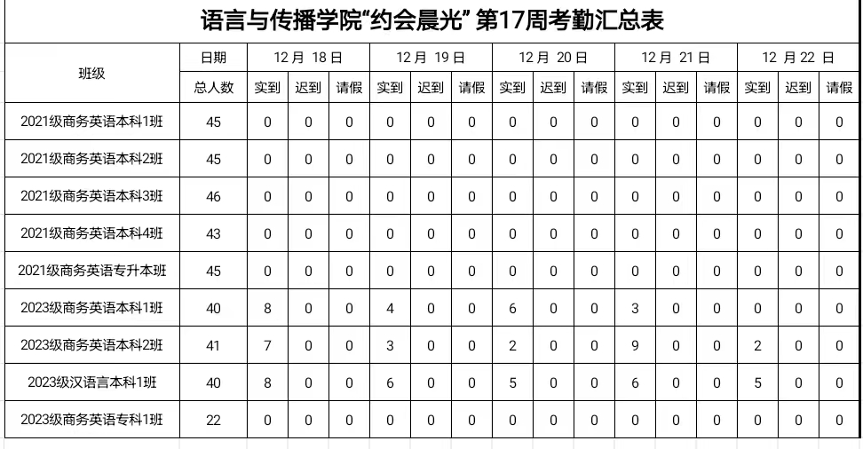 学风建设第1线|第17周卫生考勤情况通报汇总表