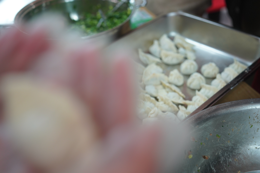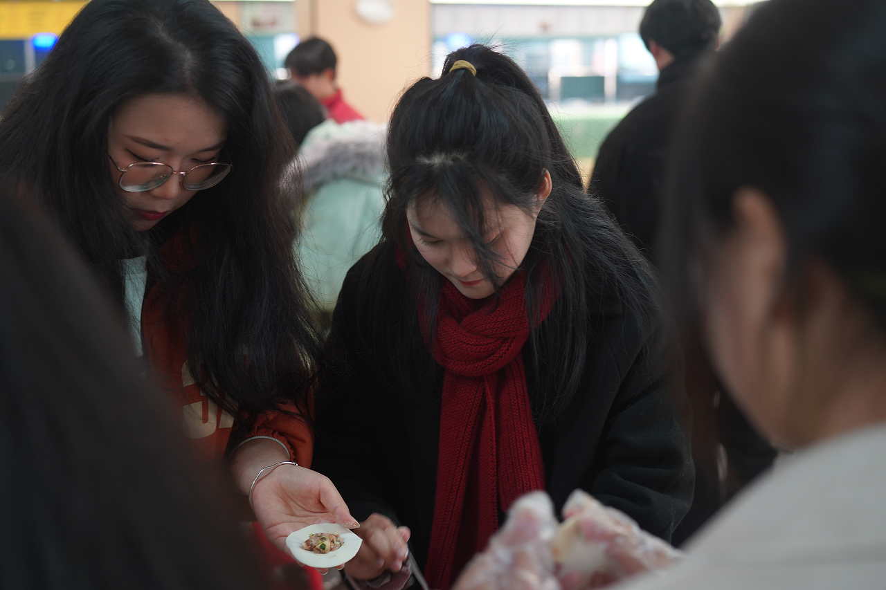 活动现场,桌子上摆满了包饺子的各种原料和工具,同学们分工协作,默契配合,现场瞬间热闹起来。“上一次包饺子还是在家里跟家人一起过春节的时候,然而这次这次在学校里包饺子却有一种很热闹、很温暖的感觉。”