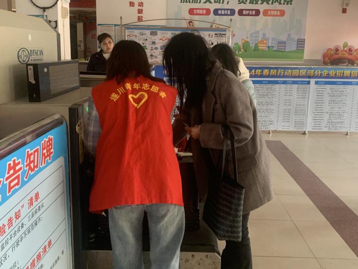此次寒假返家乡社会实践活动是以公益活动的形式进行的。在这一活动中,我成为了“遂川县2024年暖冬行动”志愿者中的一员。1月18日上午,我骑车前往志愿服务点,八点零一分到达车站,八点零五分和其他小伙伴穿好志愿者服站岗。上午和另外一位志愿者被分在车站入口的安检处,帮助有需要的乘客们把行李放至安检机输送带处。这一过程中,我们互帮互助,帮助了老年人,多包裹乘客等拿行李。对于一些不怎么熟悉安检流程的顾客,我们需要耐心指导,因为他们可能不知道为什么要把自己的包放进去,担心财产安全,这时候就需要志愿者及时说明情况,以免发生冲突。
