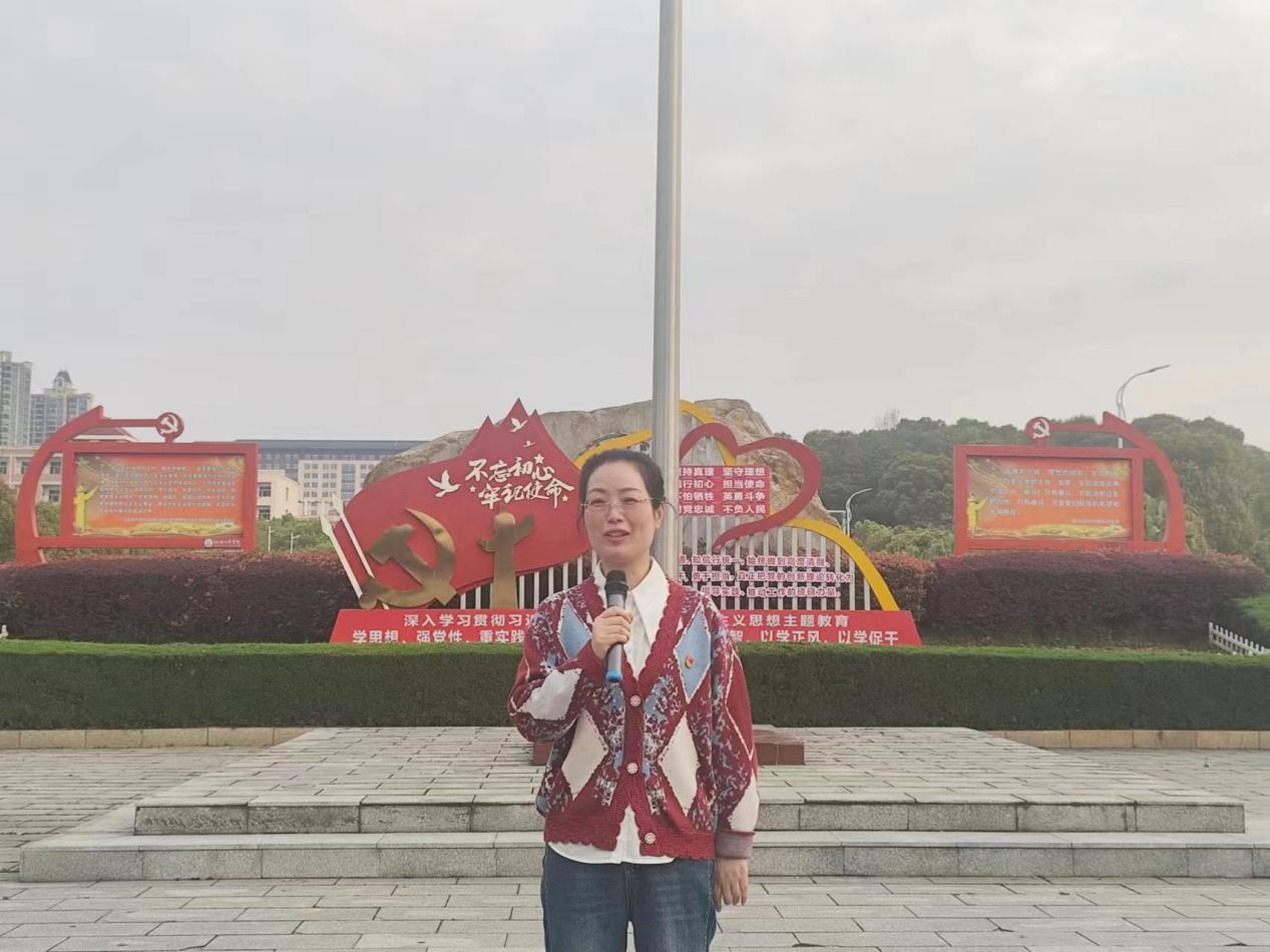 由学院党总支书记谢丽丽为本次升国旗仪式做一个总结讲话。她对语传学子在新的一学年中有以下两大点殷切期望,第一:要规律晨读,重视专业基础知识。第二:要爱校,爱国,爱党,爱社会主义。她希望语传学子在校能做好一名求知的学生,勤朴敏信,脚踏实地;出校能做好一名有真知的中国人,刻苦耐劳,自强不息。