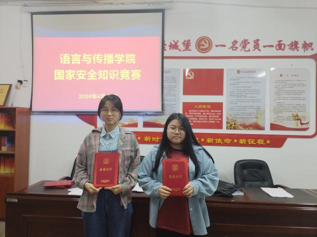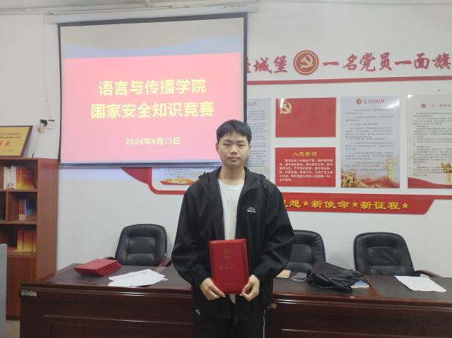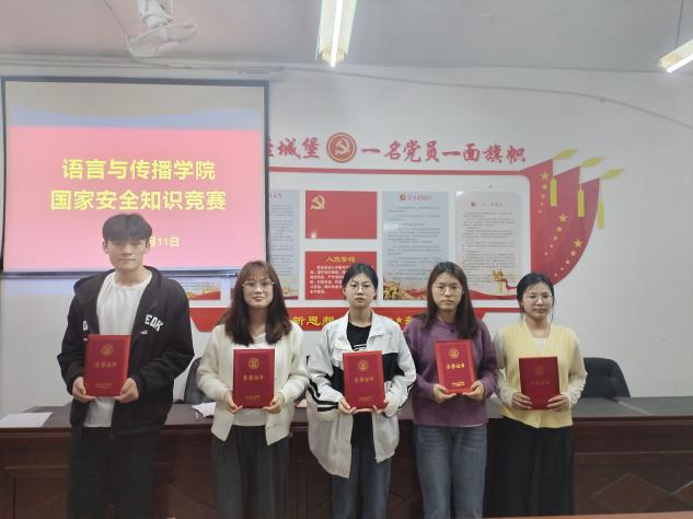 为进一步加强我院学生的国家安全知识教育,提高防范意识,树牢总体国家安全观,增强学生国家安全意识和素养,营造维护国家安全从我做起、人人有责、人人可为的良好氛围,4月11日晚,语言与传播学院在C601会议室开展国家安全教育知识竞赛。