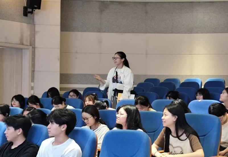 在交流环节,刘老师针对学生代表提出的问题,从自身经历出发,传授教学过程中应如何与学生相处并引导学生学习的经验。