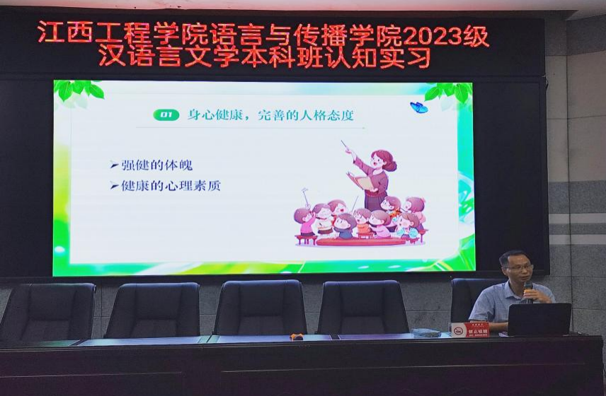 刘老师作为一线教师代表,对学生进行了主题为“现代教师的基本素养”的讲座。学生们仔细聆听刘老师讲述成为一名合格的人民老师应该具备的九大素质:完善的人格态度、正确的价值取向、强健的体魄、健康的心理素质、完善的人格态度、良好的职业操守、高尚的品德言行、多元的知识结构和娴熟的教学艺术。