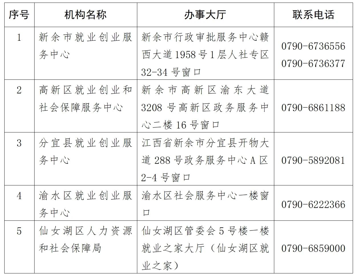 新余市各级就业创业服务机构清单