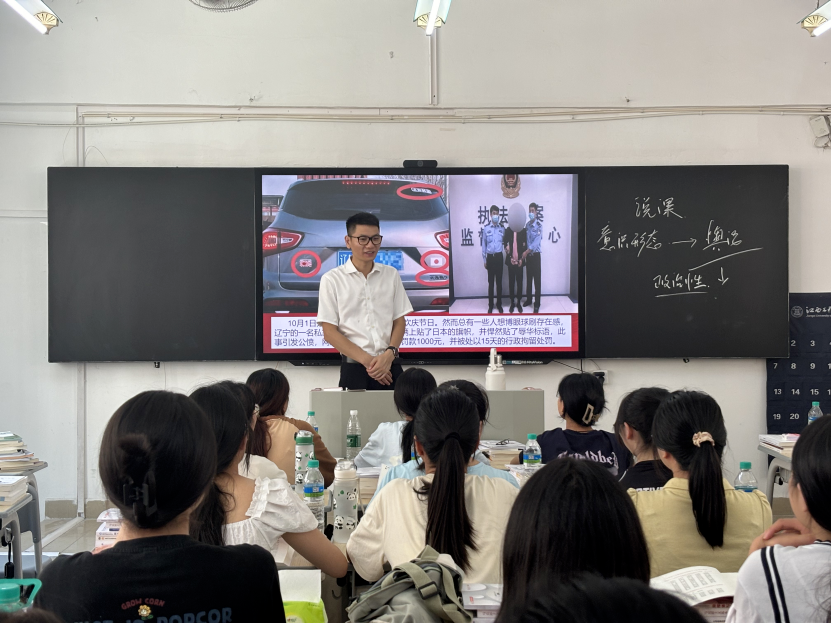 随着上课铃声的响起,乐助理轻步进入2023级网络与新媒体本科班教室,静静地坐在教室后排,与同学们一同听取了崔丽老师精心准备的《习近平新时代中国特色社会主义思想概论》课程。乐助理一边认真听课一边仔细记录,关注着教师的授课情况和学生的听课状态。崔丽老师的课堂生动有趣,她以深入浅出的方式,将上课内容与当前热点巧妙融合,激发了同学们浓厚的学习兴趣和思考热情。课堂上,师生互动频繁,气氛活跃,展现了语言与传播学院良好的教学风貌和学生积极向上的学习态度。