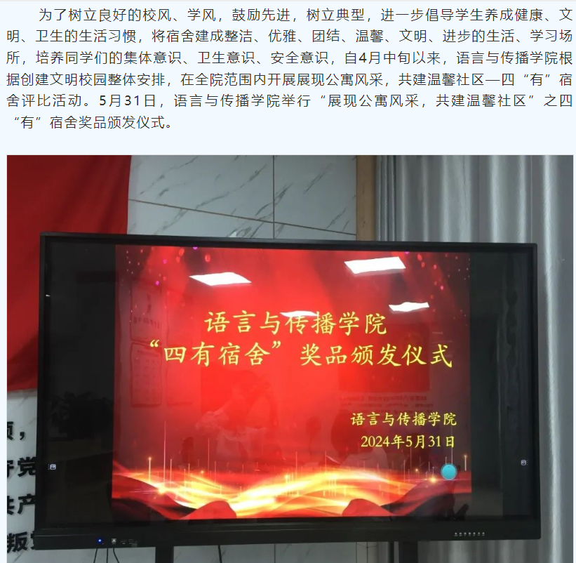 为了营造良好的校园环境和宿舍氛围,学院每月定期开展宿舍检查。生活权益部负责带领入党积极分子对整个学院的宿舍进行检查,并评选出优秀和不合格宿舍,并对优秀宿舍发放奖励。