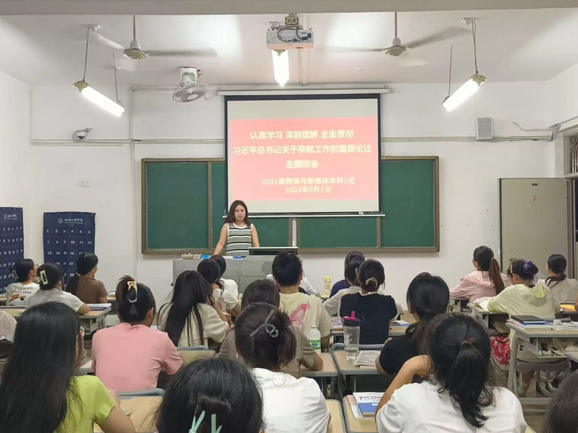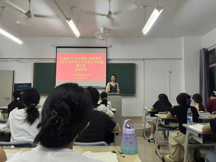 为深入学习习近平总书记关于宗教工作的重要论述,把党和国家宗教工作政策落到实处,语言与传播学院在各班召开“认真学习 深刻理解 全面贯彻习近平总书记关于宗教工作的重要论述”主题班会。