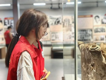 踏入博物馆大门,走廊上描绘着战士们斩钉截铁、甘愿赴汤蹈火的场面,志愿者与讲解员一同漫步穿过展厅。展厅里展出的古老文物虽然布满尘埃,但在志愿者眼里依然璀璨夺目。他们所见到的,不仅仅是历史的宁静,更是曾经激情澎湃的岁月。