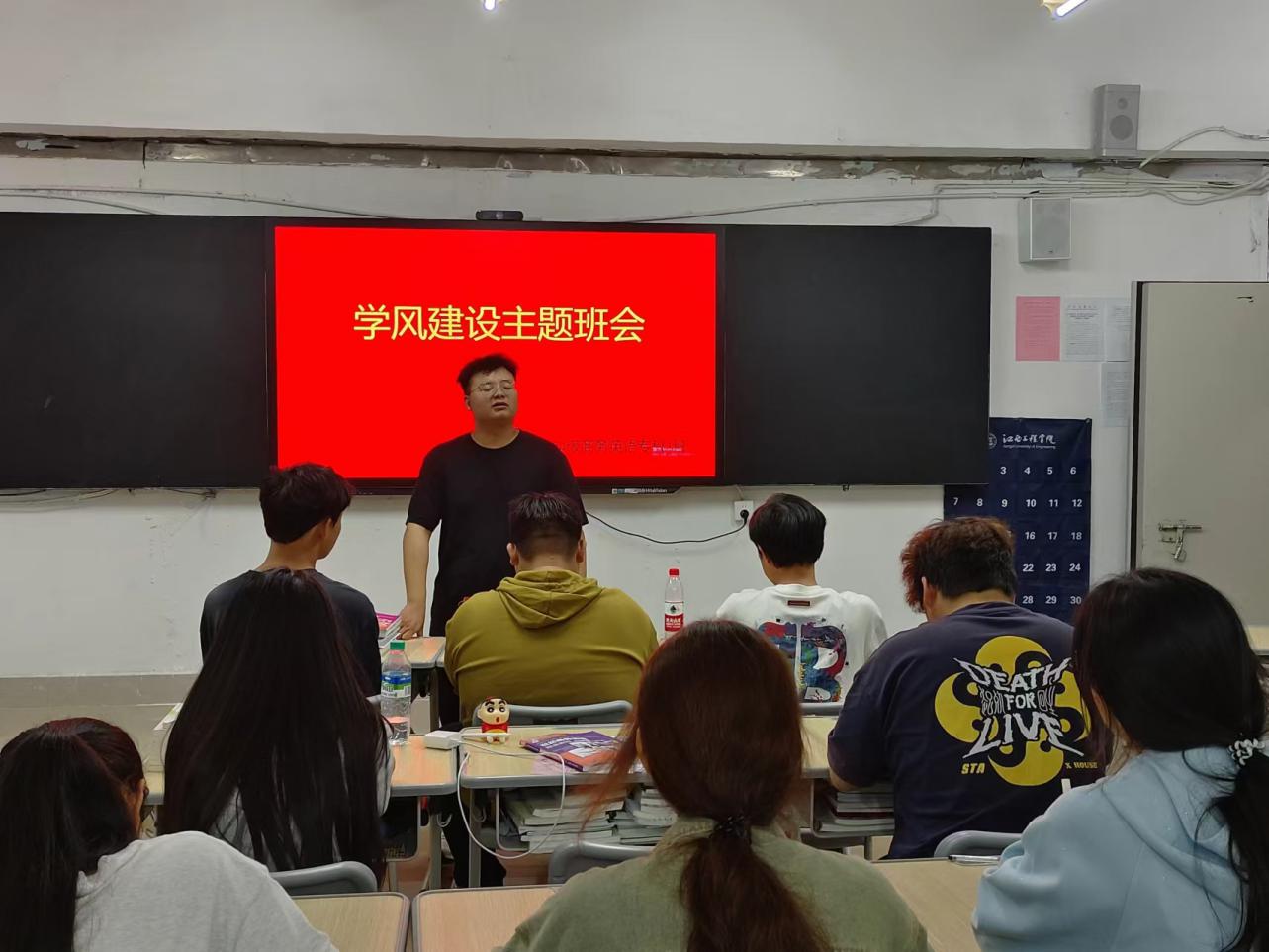 班会伊始,各班辅导员(班主任)详细介绍到学风及其建设的概念,着重强调学风建设是大学教育的重要组成部分,是大学生成长成才的重要因素,并进一步强调大学生在学风建设中的主体作用。