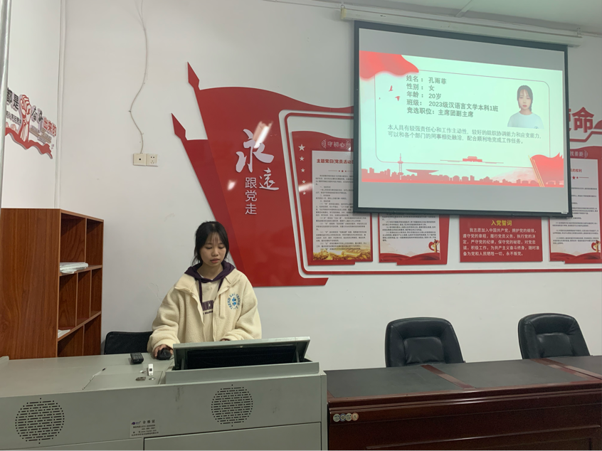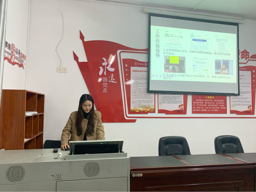 新时代赋予新使命,新时代书写新篇章。随着新学期的到来,为更高效地展开工作,同时也为学院注入新鲜血液,11月8日,语言与传播学院在C401举行团总支学生会主席团换届选举大会。语言与传播学院党总支书记谢丽丽,团总支书记胡金梅,党总支统战委员兼宣传委员方怡婷,学生党支部统战委员张凤云,学生会主席,各部门部长、副部长及团学干部代表参加了本次活动。