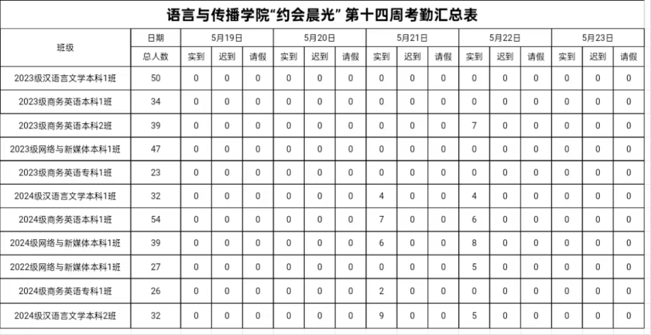 学风建设第1线|第14周卫生考勤情况通报汇总表