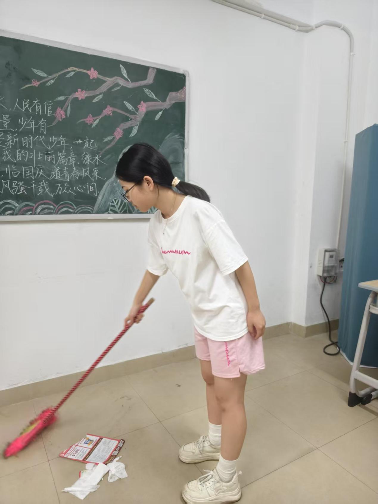 教室,是知识的殿堂,承载着同学们的梦想与希望。为营造干净整洁的学习环境,发挥入党积极分子的先锋模范作用,6月8日,一群怀揣着热忱与责任的入党积极分子们,用实际行动践行初心,对教室进行了一场彻底的清扫。