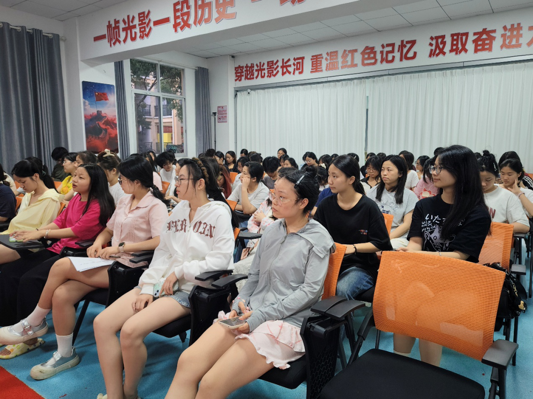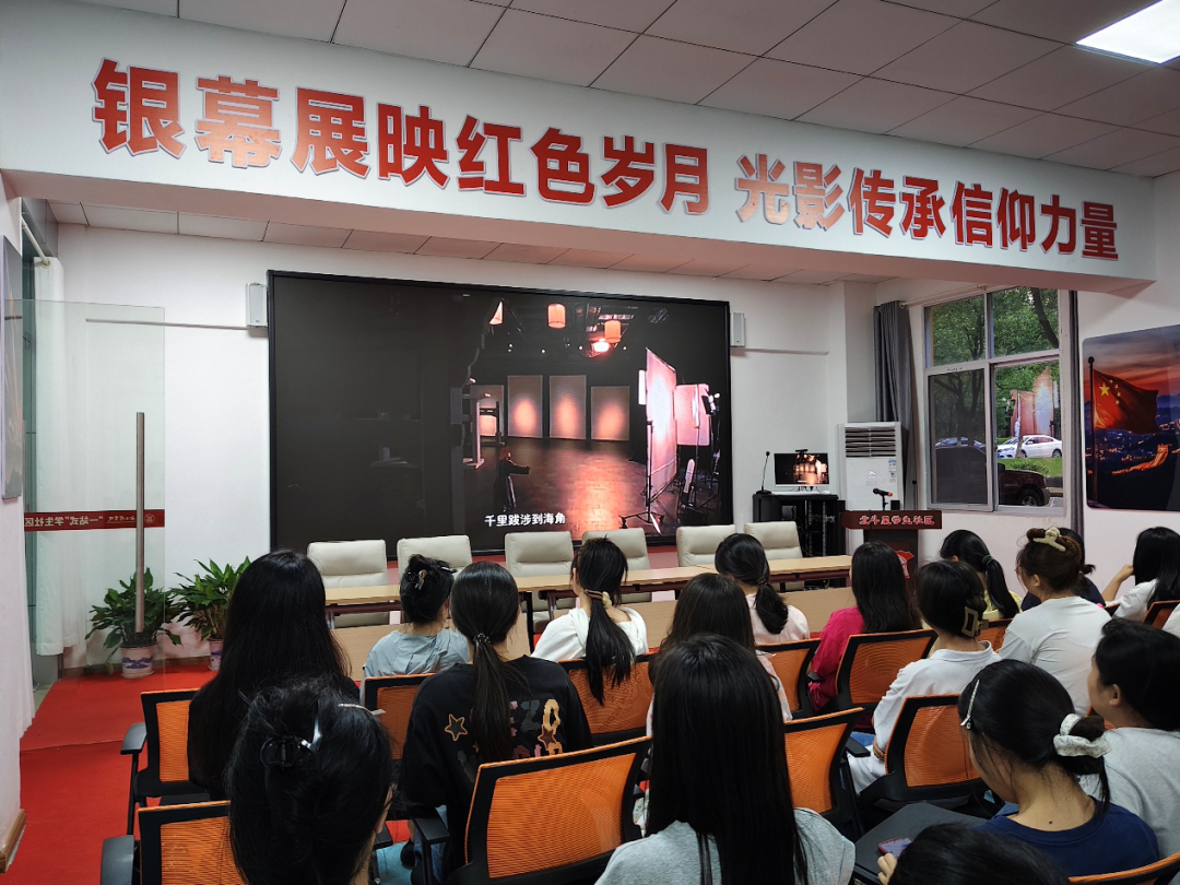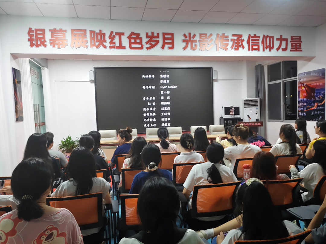 在团总支书记胡金梅的带领下,语言与传播学院的同学于2025年6月26日晚上在一站式红色电影院参加了由“红传”学生社区组织的“光影中的信仰传承”红色观影活动。此次活动旨在通过观看红色电影,传承和弘扬革命精神,增强学生们的爱国情怀和历史责任感。