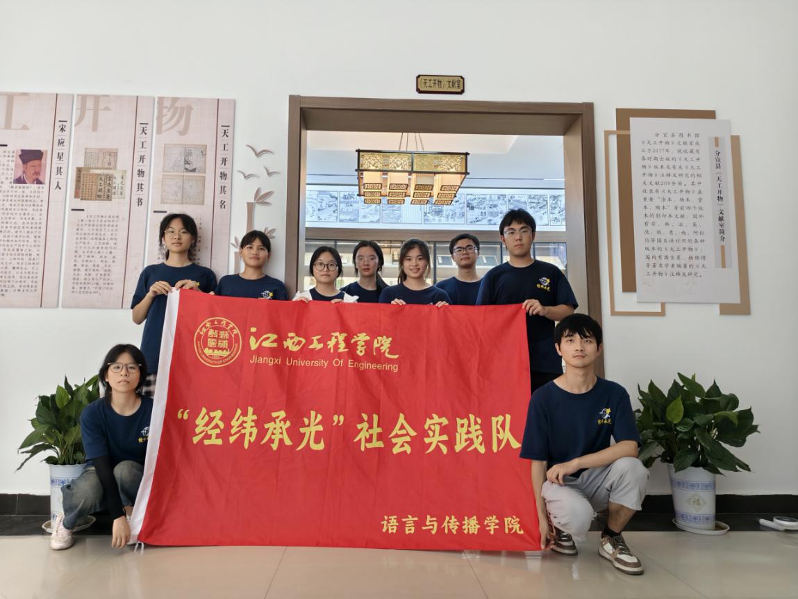 当图书馆的光影渐黯,“经纬承光”实践队此次的双馆探秘之旅亦步入尾声,但天工文化与非遗技艺的回响却在队员们心中激起了经久不衰的涟漪。在“北斗星·红传”党建品牌的引领下,队员们穿梭于泛黄的古籍之间,驻足于珍贵的展品之前,不仅深度沉浸于《天工开物》的文化底蕴,解锁了其孕育出的独特地域文明密码,更是感受到了中华传统文化的博大精深,深刻理解了文化传承的时代意义。文化传承之路漫长无垠,这并非终点,而是全新的起点。作为江西工程学院语言与传播学院“北斗星·红传”党建品牌下的特色社会实践队伍,“经纬承光”实践队的青年队员们将继续以青春为笔、热忱为墨,让“北斗”指引探索方向,以“红传”延续非遗薪火,把文化传承使命融入党建引领实践,在弘扬中华优秀传统文化的征途上坚定前行,用坚实脚步丈量文明厚度,以赤子之心守护文化瑰宝,以蓬勃朝气书写新时代的传承华章。