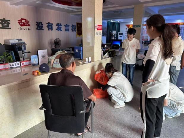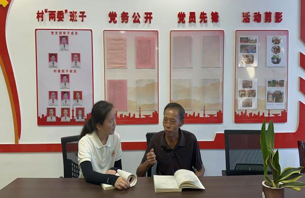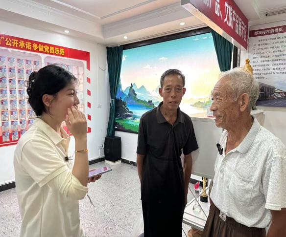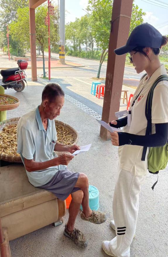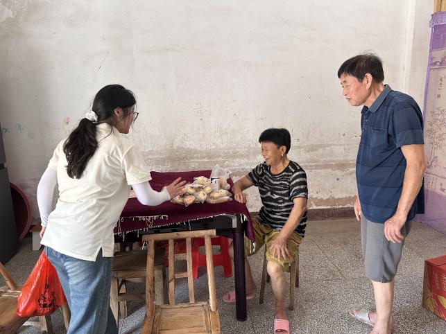 实践队一进入彭家村,便迅速投入到“聆听罗坊红色故事,书写关怀为民办事”活动中。队员们满怀敬意地为接受采访的老党员分发慰问品,每一份慰问品都承载着队员们对老党员深深的关怀与敬重。随后,队员们与老党员进行一对一深入采访。当询问“您是什么时候入党”时,老党员们眼中闪烁着光芒,深情回忆起自己入党的那一刻,那是他们人生中最神圣的时刻,也是为党和人民事业奉献的起点;谈及“您的入党动机是什么”,他们质朴而坚定的回答,让队员们深刻感受到那份纯粹的信仰与为人民服务的初心;关于“红军在罗坊是否组织过群众活动”“村民是如何协助红军的”等问题,老党员们打开了话匣子,讲述着那段艰苦却热血的岁月,红军与村民鱼水情深,共同为革命事业奋斗。队员们全神贯注地聆听着,手中的笔不停地记录着这些珍贵的历史回忆,仿佛穿越时空,亲身感受着当年的波澜壮阔。