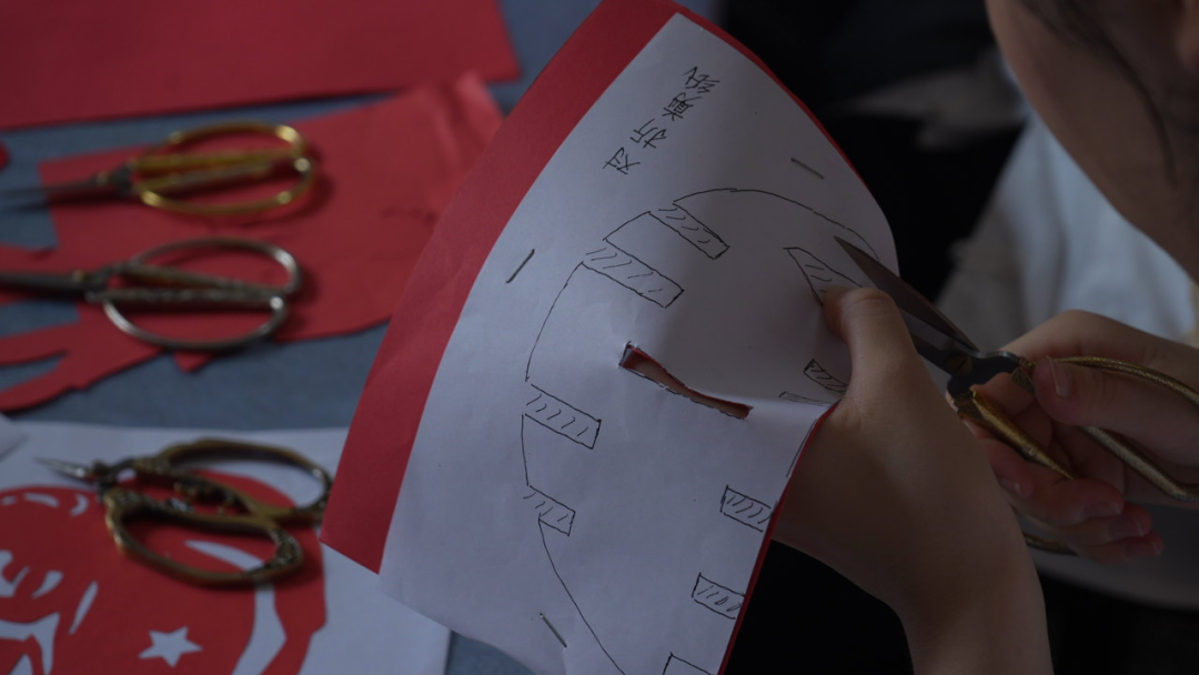 昌老师从最基础的折纸技巧入手,耐心细致地教学,指导实践队队员们剪出各式简单的纹样。剪刀在红纸上游走间,原本平平无奇的红纸渐渐幻化成灵动鲜活的图案。队员们在亲手实践中,真切触摸到非遗技艺的精巧与温度。