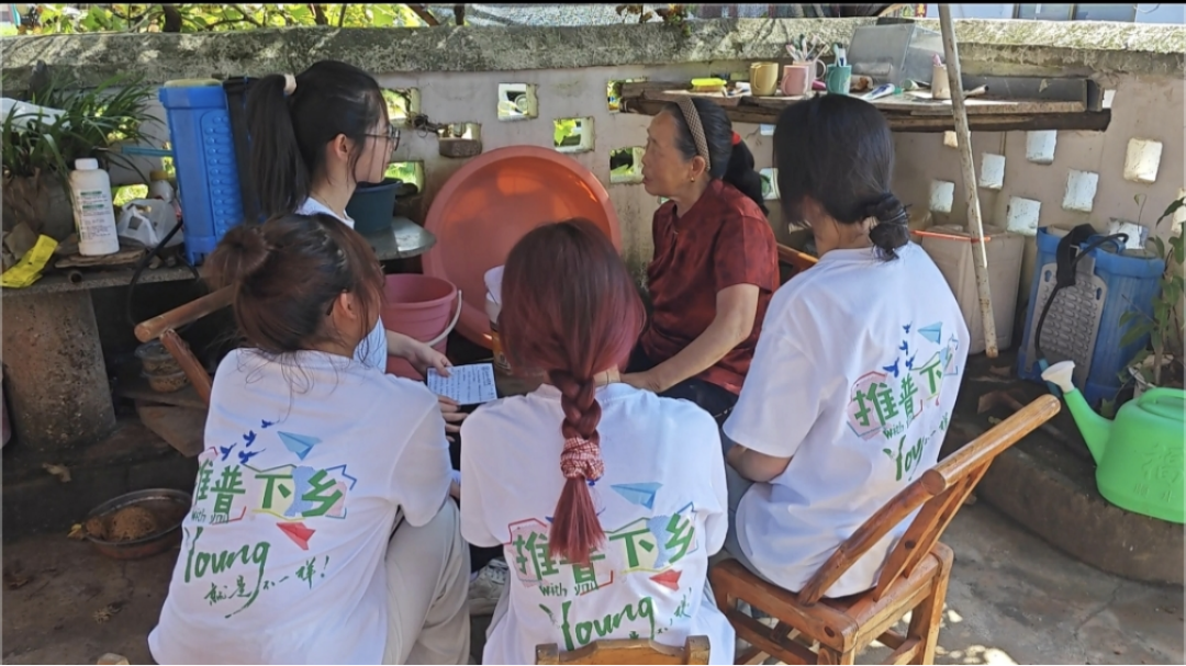 在与老人们的对话里,“墨韵渝情”社会实践队全体成员深刻体会到:推广普通话,从来不是替代乡音,而是让民族文化多一条走向世界的路。每一种方言都是文化的根,而普通话则是承载根脉的江河,让民族之花在更广阔的天地绽放。这场三下乡的实践,既是一次语言的推广,更是一场跨越代际、民族的文化对话——我们从老人们身上汲取智慧,老人们因我们的倾听焕发活力,共同书写着民族团结、文化共荣的时代新篇。 语言相通,方能心意相连;文化交融,才可生生不息。愿普通话与民族语言携手同行,让每一份独特的声音,都成为中华民族大家庭中最动人的乐章!