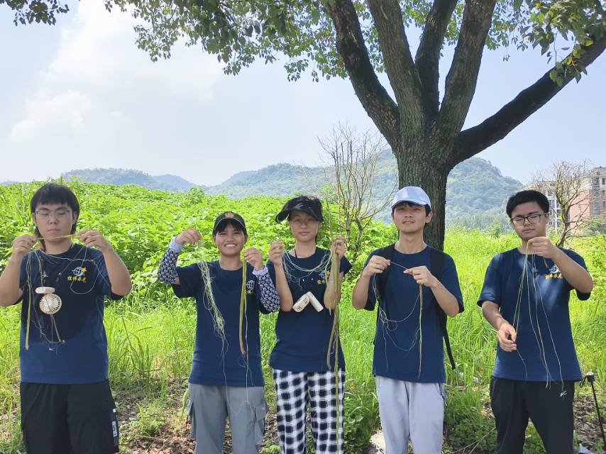 在农户的耐心指导下,队员们纷纷上手实践。看似简单的剥麻、刮皮动作,实际操作起来却并不容易:力道太轻,杂质难以去除;力道过重,又会损伤纤维;晾晒时角度不对,还可能导致纤维干湿不均。一番尝试后,队员们虽已汗流浃背,却深刻体会到“从麻到布”的每一步都凝聚着手艺人的辛劳与智慧。正如队员们所说:“亲手实践后才明白,每一寸夏布都不是简单的‘布料’,而是无数次打磨、无数次协调的成果,这背后藏着祖辈代代相传的坚守。”