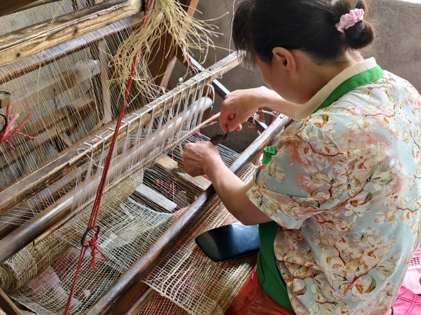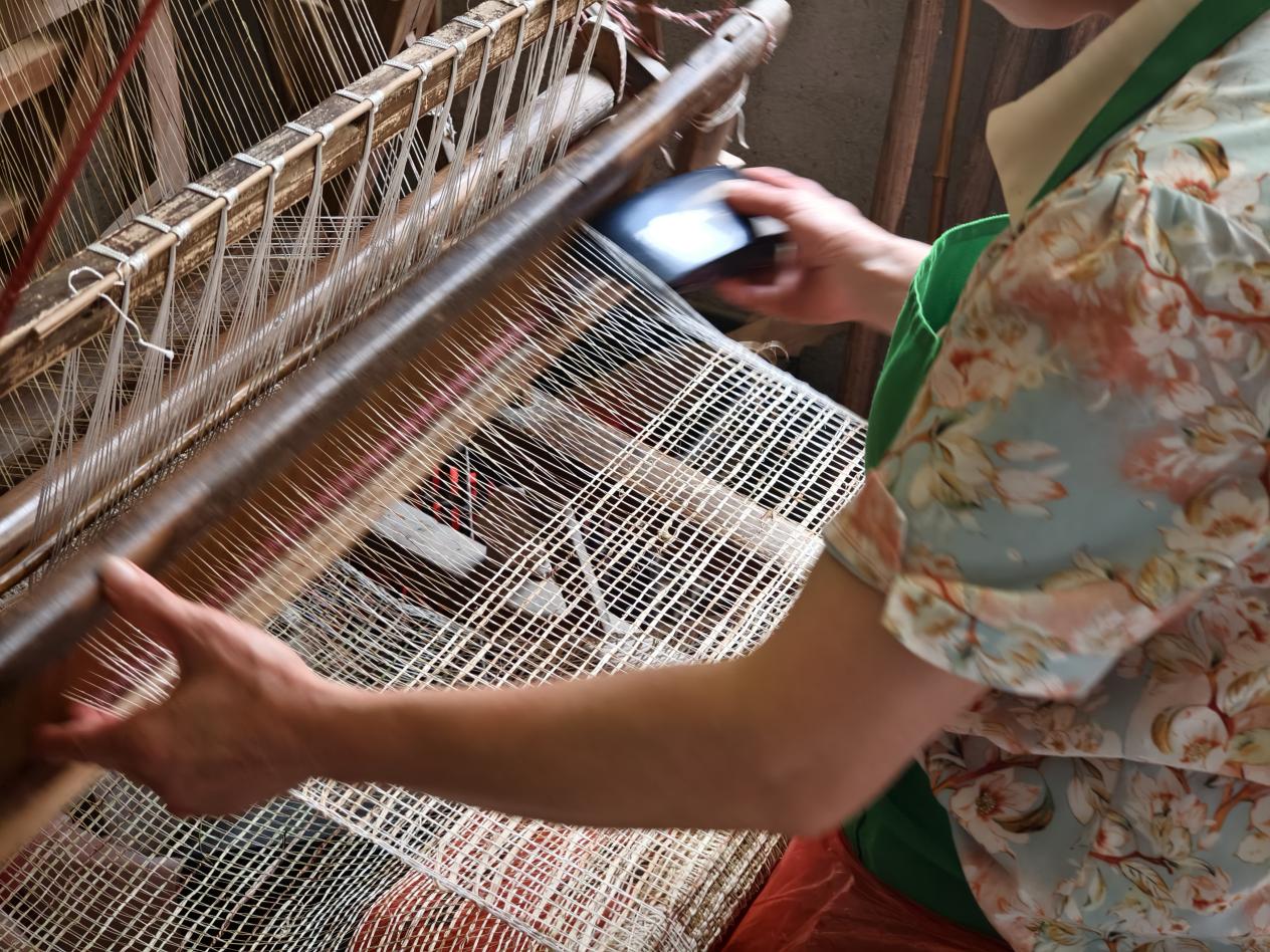 谈及夏布制作的核心技巧,农户更是毫无保留地分享:“这门手艺没有捷径,全靠‘手脚协调’的硬功夫。织布时,脚要精准控制踏板以调节经线开合,手要平稳抛接梭子以带动纬线穿梭,速度、力度都得拿捏到位,一步跟不上就可能断线错纹。刚开始学的时候,手‘打架’是常事,得练上几年,才能让它们像‘老伙计’一样默契配合,这是祖辈传下来的‘笨办法’,也是最管用的办法。”