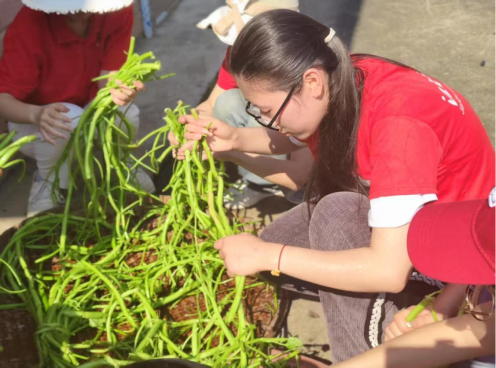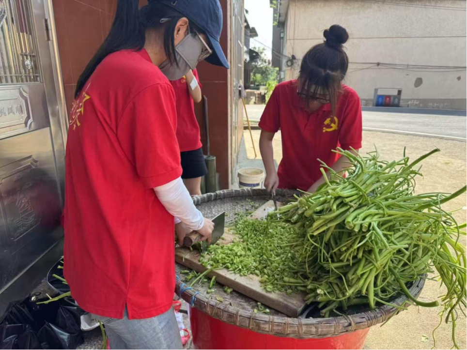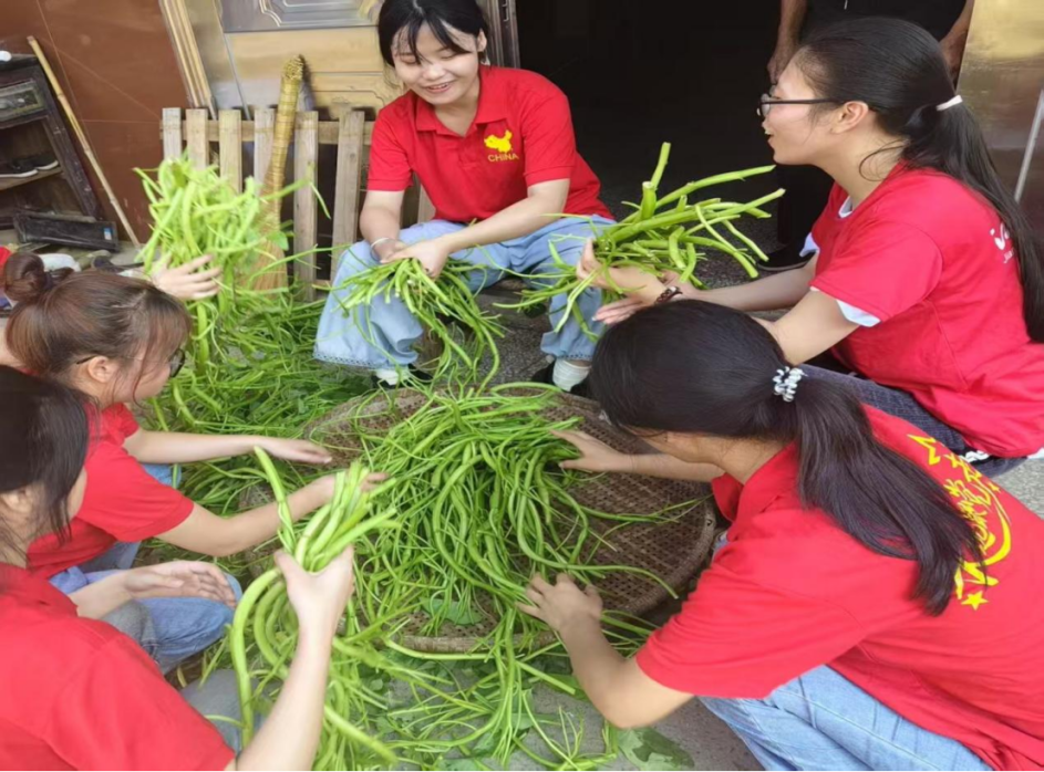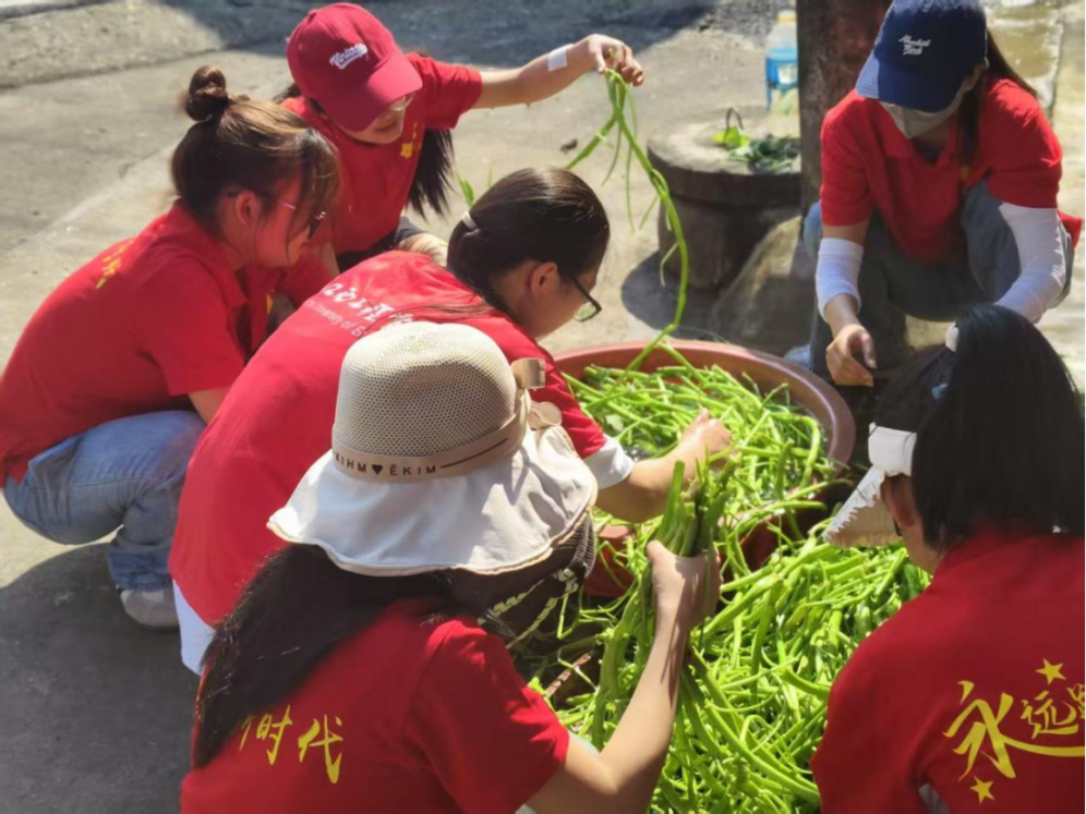 随后,在新余市欧里镇哲村的土地上,“三下乡”实践队的青春身影,融入乡村日常。队员们围坐竹筐旁择菜,红衫与鲜绿菜梗相映,在交流里分辨老嫩,传承农作智慧;水井边洗菜,清水涤去泥污,让乡土气息在指尖流淌;案板前切菜,利落刀工将食材规整,为烟火美味奠基。田间俯身采摘,于菜丛中探寻成熟果实,把汗水洒进泥土。这一系列农活,是队员们触摸乡村肌理的方式,在劳作里读懂土地的馈赠,让青春与乡土共情,书写实践育人的鲜活篇章,也让哲村的夏日,因这群年轻人的参与,添了几分朝气与温暖。