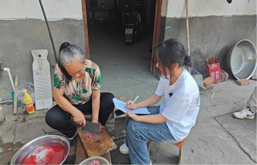 实践队的队员们分成几个小组,沿着蜿蜒的村路挨家挨户走访,耐心询问村民们的普通话需求。大多数村民积极配合,分享了许多宝贵建议。一位系着蓝布围裙的阿姨擦了擦手上的面粉,眼里满是期待:“要是村里能办个普通话班就好啦,不用跑远路,邻里街坊凑在一起学,热热闹闹的也容易记住。”这些带着生活温度的建议,被队员们仔细记在笔记本上,字里行间都是沉甸甸的信任。尽管少数村民有所顾虑,但队员们真诚的眼神和耐心的解释打动了他们,最终收获了33份填满字迹的问卷。