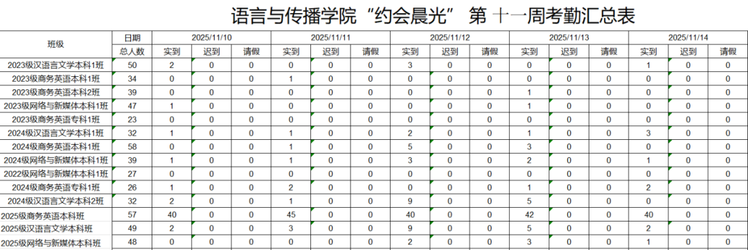 学风建设第1线|第11周卫生考勤情况通报汇总表