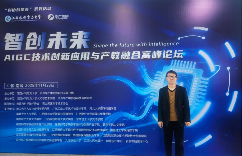 2025年11月23日,“智创未来:AIGC技术创新应用与产教融合高峰论坛”在江西水利电力大学成功举办。为紧跟AIGC技术发展前沿、深化产教融合育人理念,我院教师吴礼明参会,沉浸式感受这场汇聚学术智慧、产业力量的思想碰撞,见证AIGC技术赋能产业升级与教育变革的全新可能。