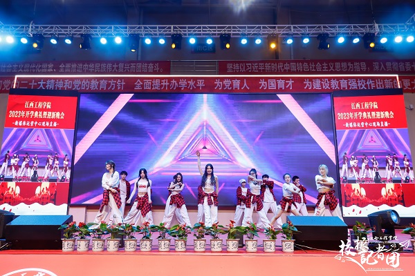 随后,大型文艺汇演将开学典礼的氛围推向高潮。校园文化中心、激情江工街舞社团带来的开场舞《青春有我定义》热情洋溢、燃情四射,充分调动了现场的气氛。新余市音乐家协会资深音乐人的五正乐队演唱歌曲《鼓楼》和《海阔天空》,节奏叩人心扉,歌词饱含思考和感慨;旋律入心,歌词深邃动人,让人陶醉其中。校园文化中心、动感江工拉丁社团表演的国标舞《show time》,衣袂飘飞,舞姿轻盈。