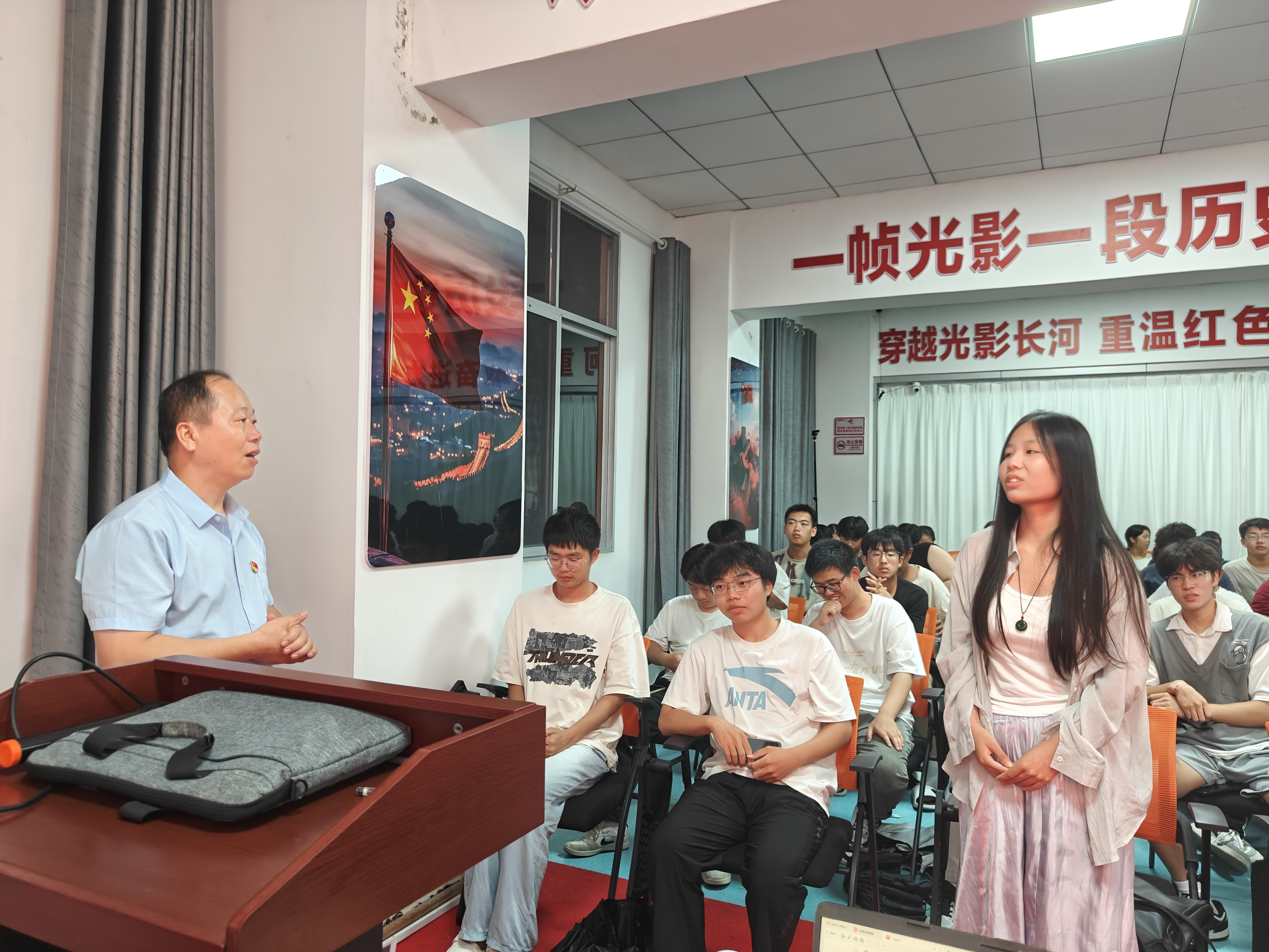 9月24日,江西工程学院“一站式”学生社区红色影院的讲台上,“老兵宣讲团”成员胡光明声情并茂地讲述着,台下不时响起阵阵热烈掌声。