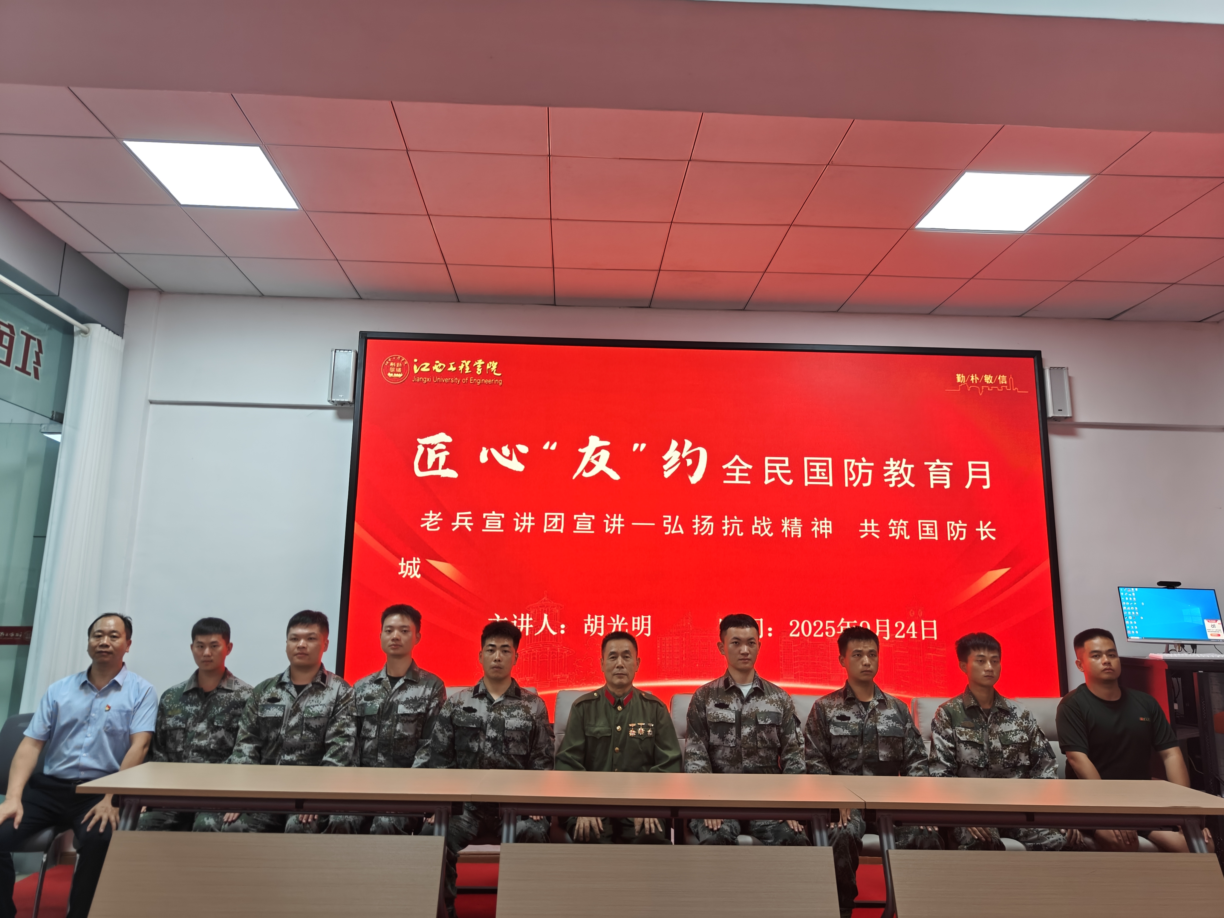 “江西工程学院的大学生特别优秀!互动环节中,他们能准确回答一系列国防知识问题,这让我特别欣慰。”胡光明笑着说,“从握枪杆子到拿笔杆子,从战士到宣讲员,岗位在变,但融入骨血的忠诚与担当不变。把红色故事讲好、让红色精神代代传,就是我一直以来的初心。”
