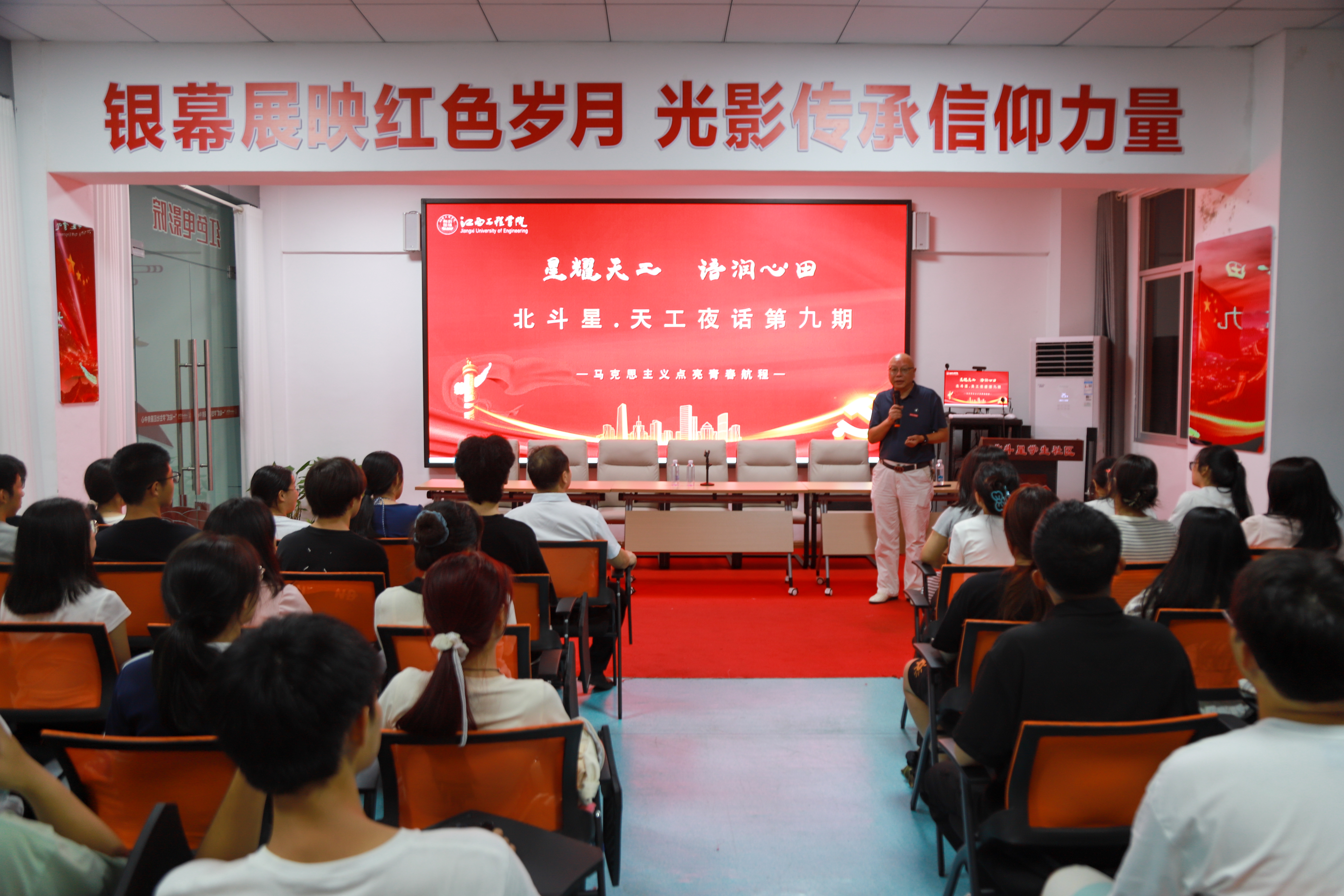 10月9日,江西工程学院马克思主义学院联合校学工部、校团委等单位,在“一站式”学生社区成功举办“北斗星・天工夜话”第九期活动。马克思主义学院院长王勇教授以《社会主义荣辱观的缺失与重构》为题开讲,近60名团学干部齐聚一堂,在案例剖析与互动交流中读懂荣辱边界、校准价值坐标,让“自立自强、乐业乐群”的校园精神与“勤朴敏信”的校训内涵融入成长认知。