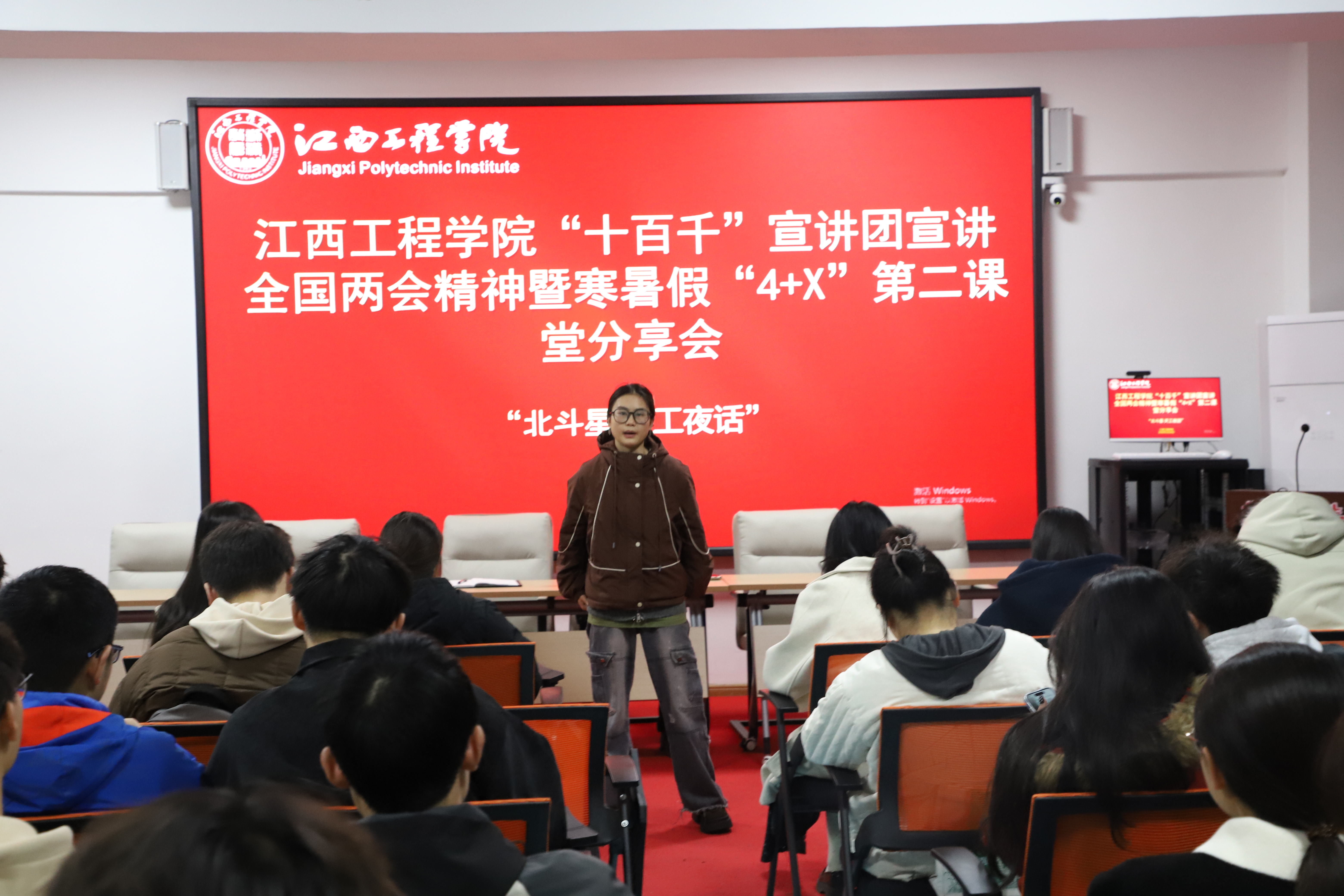 据悉,江西工程学院始终以“北斗领航铸魂育人”为根本,通过“北斗星・天工夜话”“行走的思政课”等品牌活动,推动党的创新理论与校园实践深度融合。后续,学校还将开展“创新创业看江工”“英雄模范进校园”等系列活动,持续深化两会精神学习贯彻,扎实推进本科教学工作合格评估工作,引导广大青年学子在理论学习中坚定信念,在实践磨砺中勇担使命,为强国建设、民族复兴贡献江工力量。