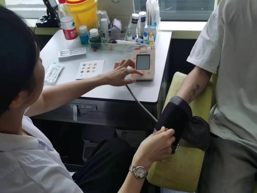 在活动现场,医务人员以专业的知识和细心的态度,向参与献血的同学们详细讲解了献血的注意事项和相关知识。他们耐心地询问了同学们的身体状况、作息习惯以及近期用药情况,并仔细地指导他们填写献血信息表。对于符合献血条件的同学,医务人员在完成血型、血压、脉搏等指标的检测后,便会安排他们进入献血车内进行采血。