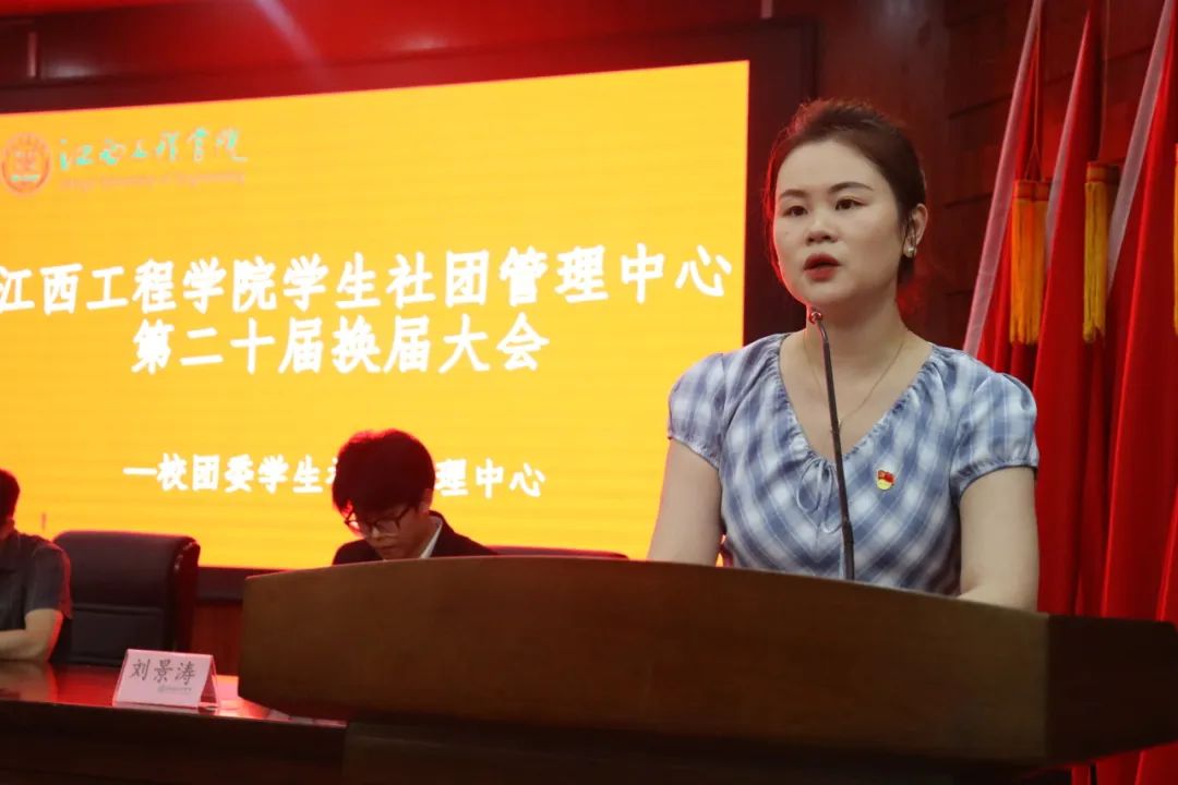 为了进一步强化我校学生社团的组织建设与管理工作,延续学生社团文化,丰富学生课余社团生活,打造思想纯粹、守正笃实的社团组织,助推江西工程学院学生社团工作高质量发展,2024年6月20日我校学生社团管理中心在学术报告厅一楼召开了江西工程学院学生社团管理中心第二十届换届大会。校团委书记桂盈盈,党委学工部副部长周卫忠,校团委办公主任郑琳,校团委尹冬慧老师以及各学生社团200余名同学参加本次换届大会,会议由校团委办公主任郑琳主持。