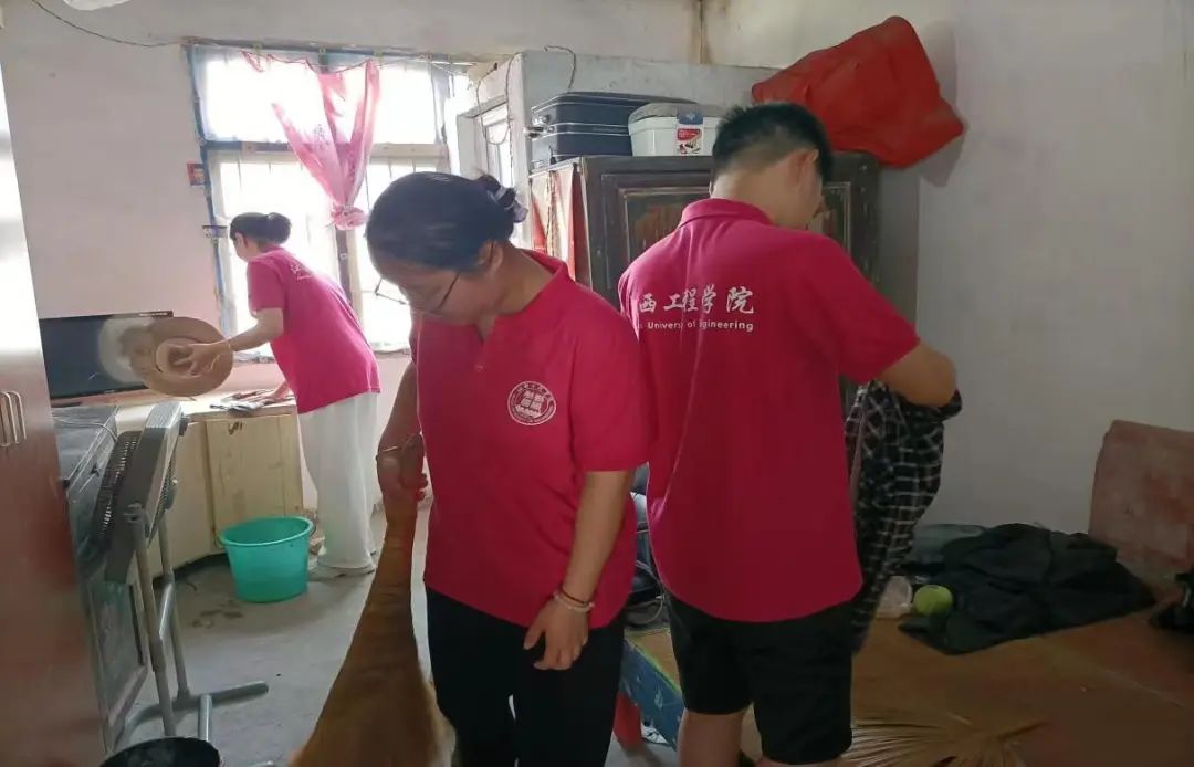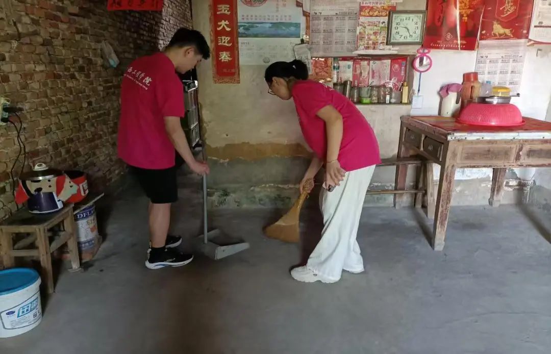 在活动开展过程中,村委会相关人员带领队员们去往独居老人家中。第一户是腿脚稍有残疾的老人,团队成员积极主动地为老人打扫卫生、整理房间,用朴实而真诚的行动表达着对老人们的关爱。