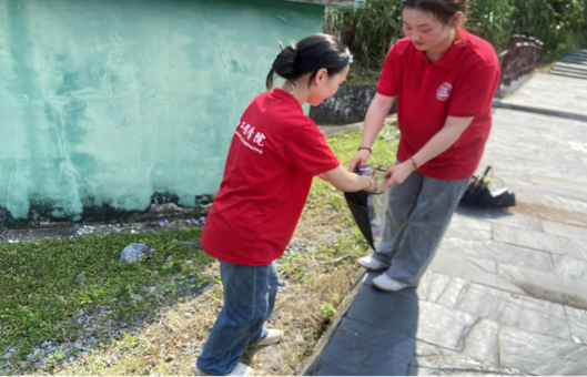 智能制造产业学院的队员们身体力行、团结协作,一支队伍前往社区对楼道的“牛皮癣”进行了清理,而另一支队伍沿着河道清理河岸边的垃圾,在清理过程中,实践队成员们还不断向过往的群众宣传保护河道环境的理念,呼吁更多的人参与到保护河流生态环境的行动中来。
