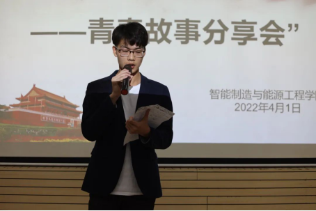 为丰富大学生文化生活,让同学们更加清楚青春的意义,锻炼同学们的语言表达能力。41日,智能制造与能源工程学院在仙女湖校区一楼学术报告厅召开了“天工大讲堂——青春故事分享会”,此次分享会由2021级机械设计制造及其自动化2班胡定茂主持,共有10名参赛人员报名参加了此次活动,21级全体学生参加了此次活动。