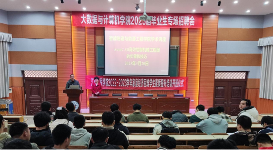 为了拓宽我院学生的专业视野、培养学生的学习积极性提升同学们的专业绘图能力,学院于2023320上午10:00邀请了李美玉副教授仙女湖校区第二学术报告厅举办了主题为AutoCAD高效绘制工程图的步骤及技巧的专题学术讲座,本次讲座由学院办公室主任游细辉主持,学院机械设计制造及其自动化、电气工程及其自动化专业共计100余名学生参加了此次讲座。