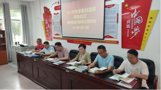 为贯彻落实教育部《普通高等学校教材管理办法》相关规定,推动学院教材建设,强化教材管理的规范性,保证教材选用质量,2023524日,智能制造与能源工程学院在仙女湖校区B104会议室召开2023年秋季教材选用审核会。会议由院长史洪松主持,党总支书记范向红,学院教材选用工作专家组教授周平、周昌勇,副教授彭秋梅、符志军以及全体教师一同参会。