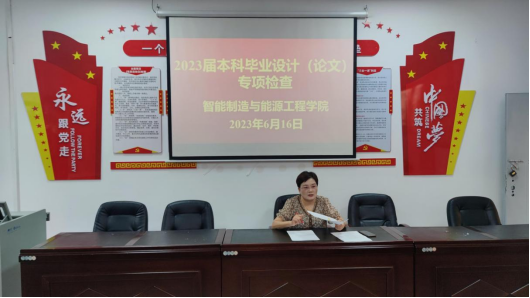 为了进一步加强毕业论文管理,提高学院2023届毕业生的毕业设计(论文)质量,按照《智能制造与能源工程学院2023届本科毕业论文专项检查实施方案》要求,学院于2023616日在B104多媒体会议室开展了智能制造与能源工程学院2023届本科毕业设计(论文)专项检查,副院长彭秋梅、各教研室主任、专业负责人和学院督导员参加了此次论文专项检查活动。