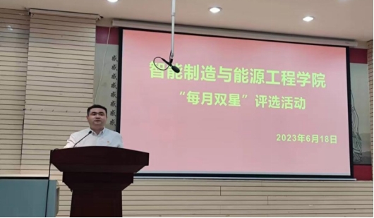 为全面提高学生综合素质,展现我院学子朝气蓬勃、积极进取的精神风貌。2023618日,智能制造与能源工程学院在仙女湖校区一楼学术报告厅开展“每月双星”评选活动,此次活动由2021级新能源科学与工程本科1班刘倩担任主持,党总支书记范向红、团总支书记李思担任评委,120余名同学参加了此次活动。