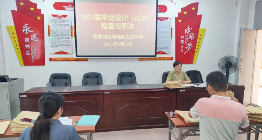 为了进一步加强毕业论文管理,减少毕业设计(论文)过程材料的错误,提高学院2023届毕业生的毕业设计(论文)质量,学院于2023825上午9点B104多媒体会议室开展了智能制造与能源工程学院2023届本科毕业设计(论文)检查再整改工作主管教学副院长彭秋梅主持了整个活动所有专业教师参加了此次活动。