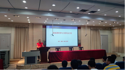 周平教授着重介绍了新能源科学与工程专业的专业培养目标、特色、未来的发展趋势及就业去向等内容,强调同学们一定要学好专业基础知识。周平教授还鼓励新同学要培养自己的兴趣爱好,参加各种活动。希望新同学能够掌握好时间、提高自身修养、学会为人处世、勤奋学习、注重实践,成为一个有道德、有思想、有价值的学生。