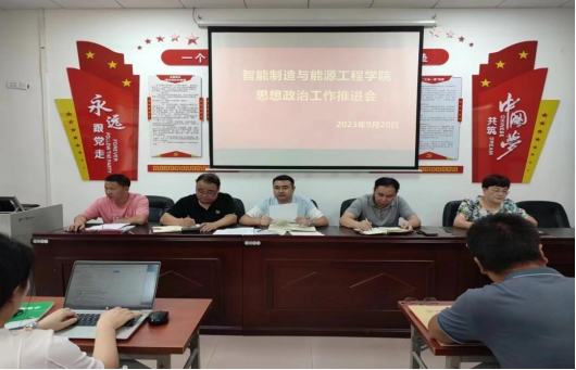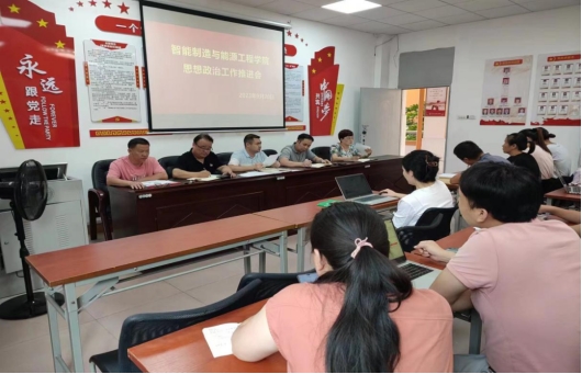 为深入学习贯彻习近平新时代中国特色社会主义思想,积极落实习近平总书记对思想政治工作的重要指示,2023920日,智能制造与能源工程学院在仙女湖校区B104会议室召开思想政治工作推进会,会议由学院党总支书记范向红主持,院长史洪松、副院长彭秋梅、党总支副书记李思、教学秘书符志军以及全体教师参会。