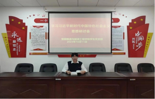 智能制造与能源工程学院学生党支部学习习近平新时代中国特色社会主义思想研讨会在B104会议室召开,会议由学生党支部书记钟丽花主持,学生党支部全体党员参加本次会议。