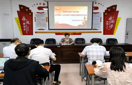 智能制造产业学院教师第二党支部在B104会议室开展六月份主题党日活动,会议由教师第二党支部书记彭秋梅主持,教师第二党支部全体党员参加本次会议。